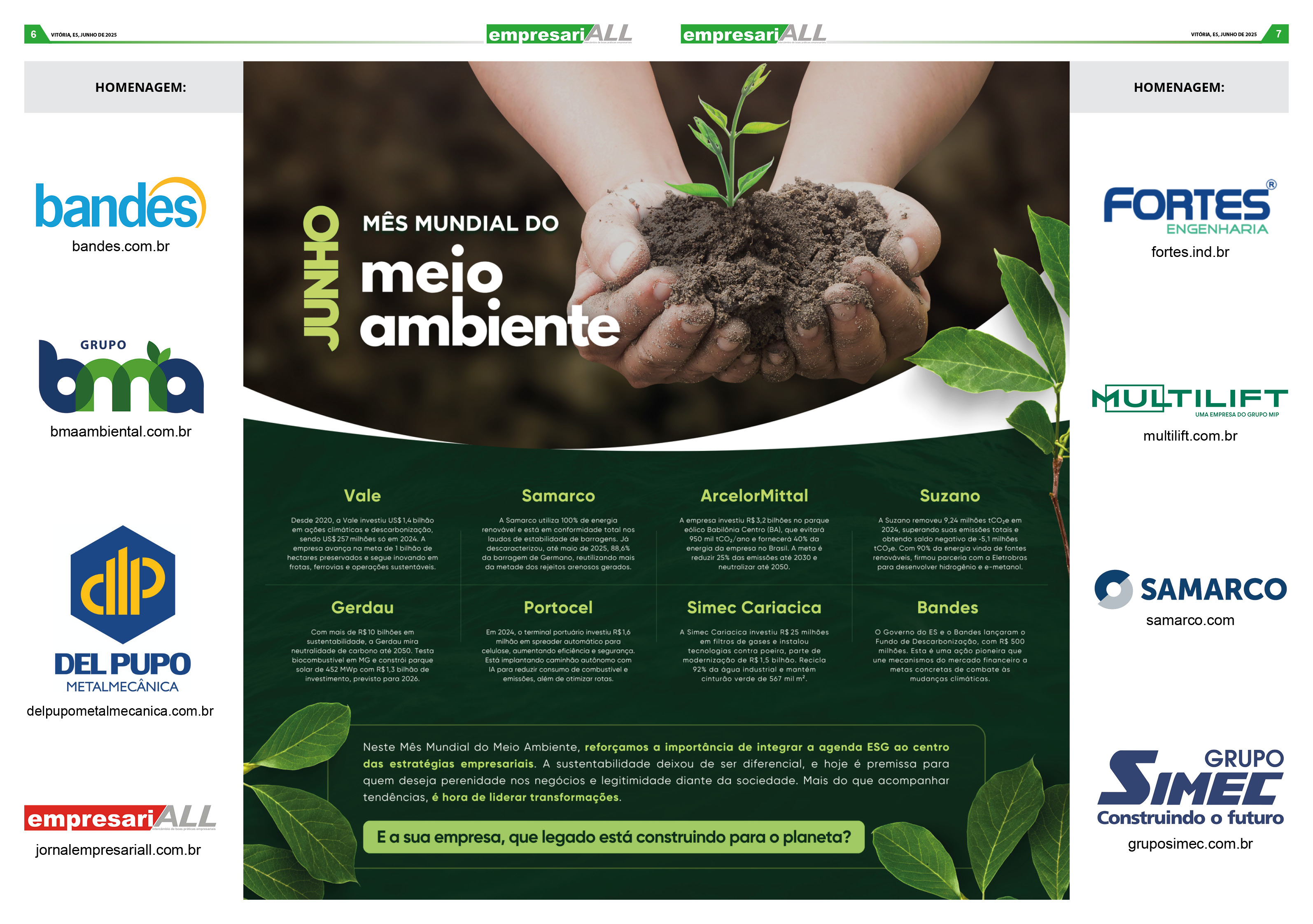 Neste Mês Mundial do Meio Ambiente, reforçamos a importância de integrar a agenda ESG ao centro das estratégias empresariais. A sustentabilidade deixou de ser diferencial, e hoje é premissa para quem deseja perenidade nos negócios e legitimidade diante da sociedade. Mais do que acompanhar tendências, é hora de liderar transformações.