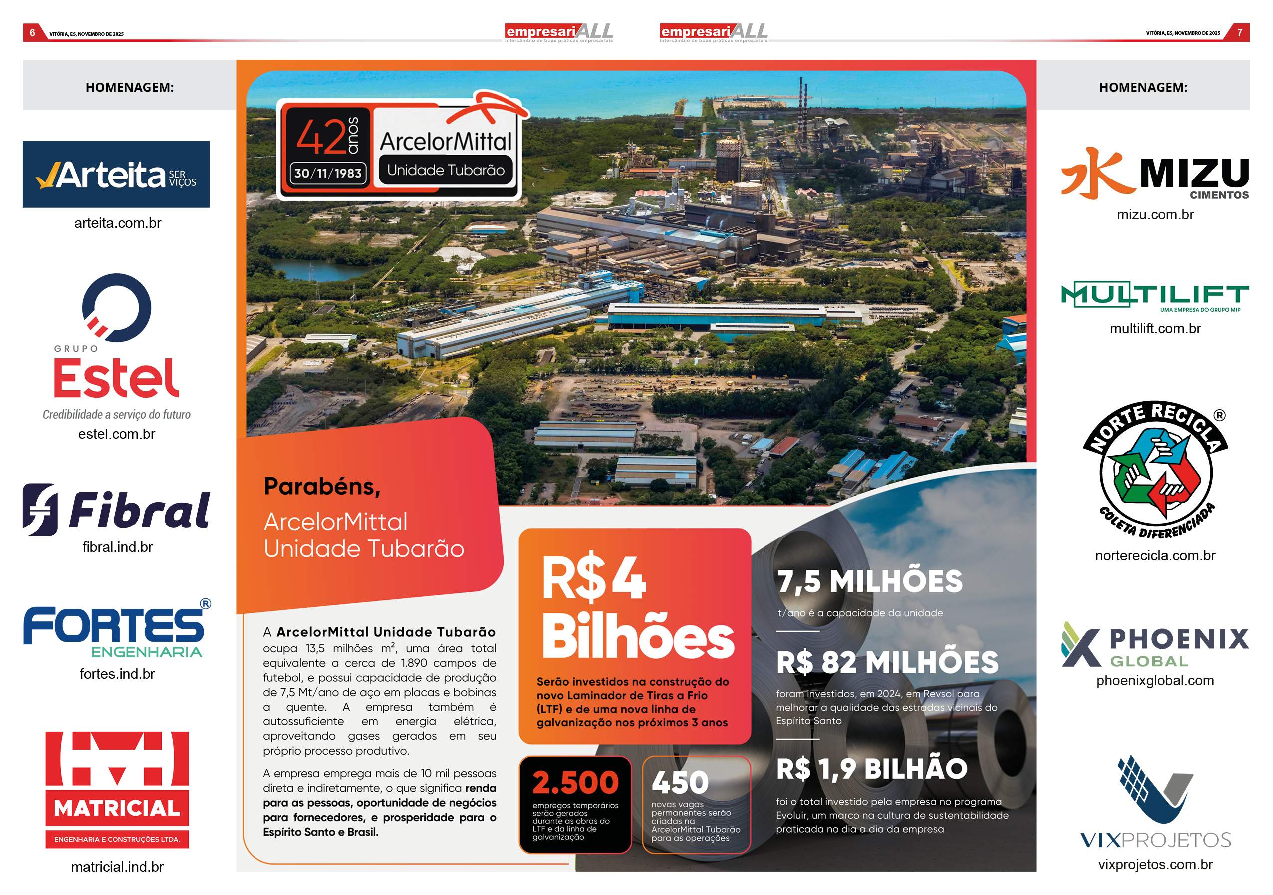 A empresa emprega mais de 10 mil pessoas direta e indiretamente, o que significa renda para as pessoas, oportunidade de negócios para fornecedores, e prosperidade para o Espírito Santo e Brasil.